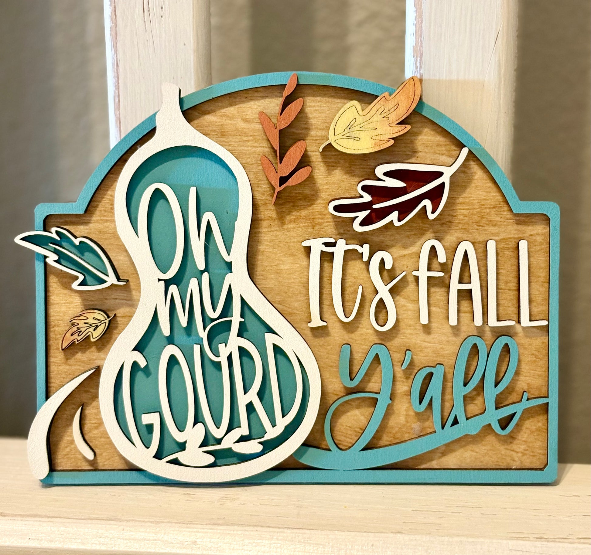 1. "Oh My Gourd It's Fall Y'all" Sign: This playful wooden sign captures the spirit of the season with its fun phrase, making it a perfect centerpiece for your tier tray. Its vibrant colors and charming design will bring smiles and set a festive tone.